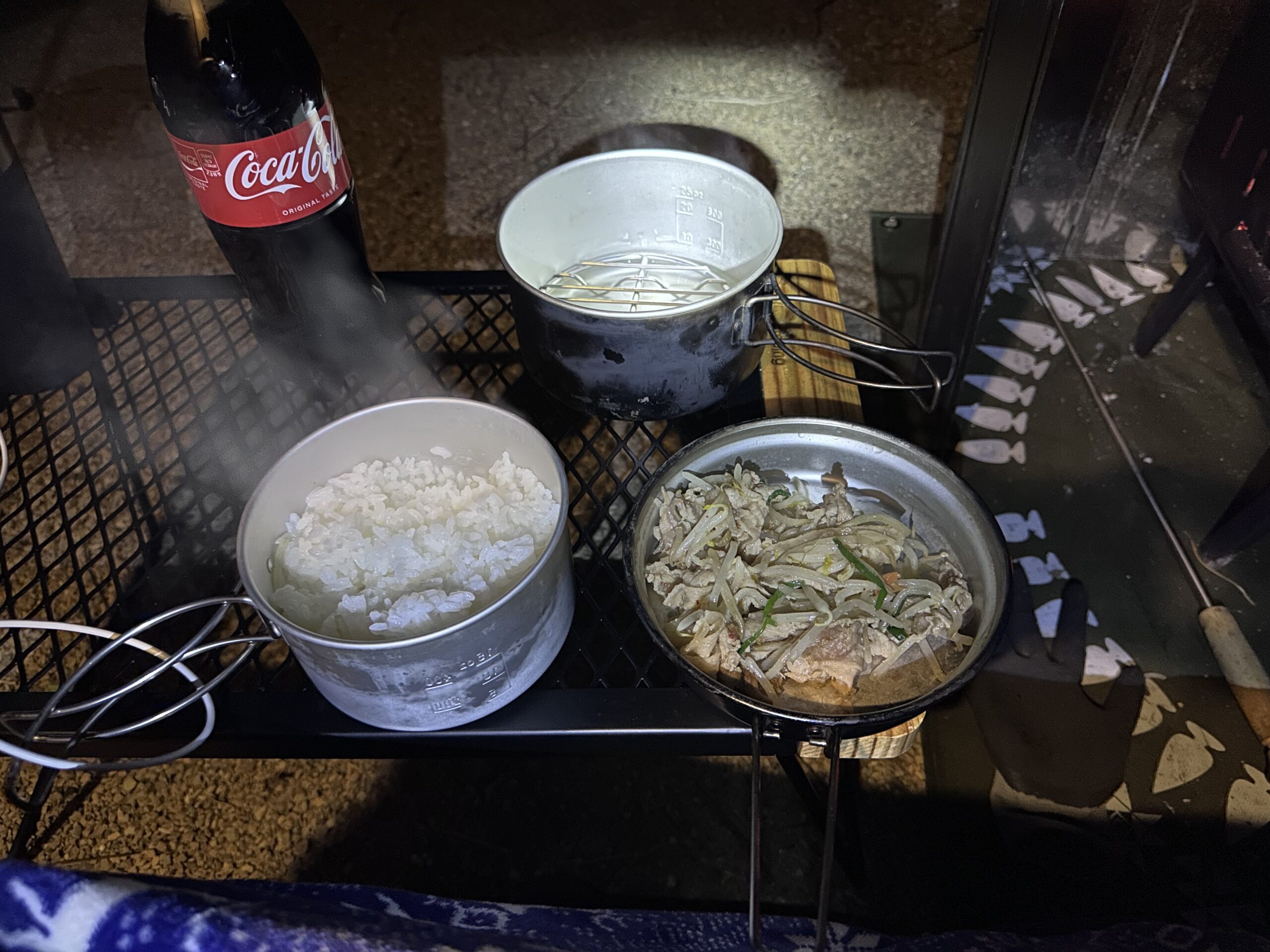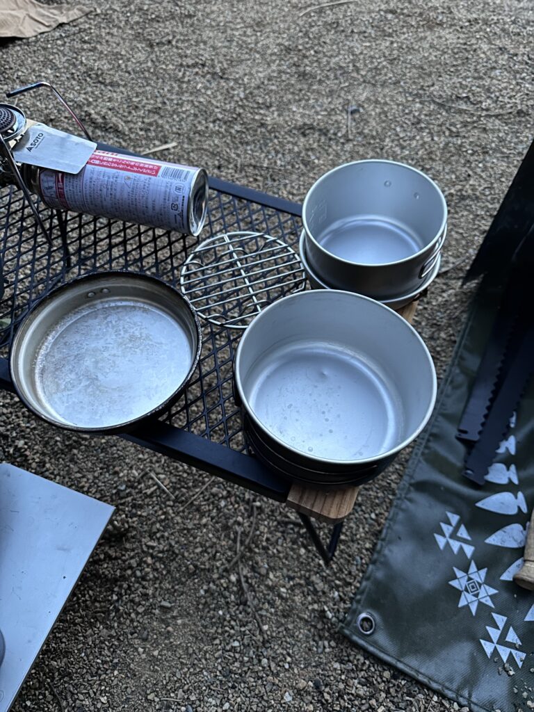 冬キャンプだと、よそったご飯はすぐに冷えてしまいますが、この方法なら外側の鍋にお湯が残っているため、**「保温効果」**が続きます。 焚き火を眺めながら、最後までホカホカのご飯が食べられる。 これこそ、水蒸気炊飯の隠れた最強メリットです。